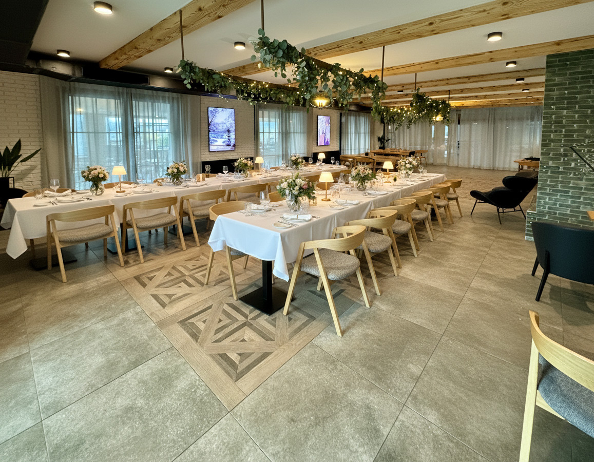 Naše klimatizované priestory reštaurácie a salónika ponúkajú príjemné, súkromné prostredie vhodné pre menšie aj väčšie skupiny hostí. Priestory prispôsobíme typu podujatia a počtu osôb – od komornej rodinnej oslavy až po veľký firemný večierok.