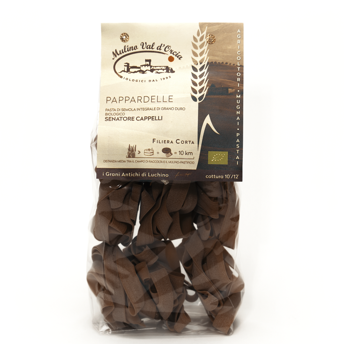 Cestoviny pochádzajú z malej rodinnej firmičky Mulino Val d´Orcia. Obilie, ktoré sa používa na výrobu všetkých cestovín je dopestované BIO spôsobom na poliach vo vzdialenosti maximálne 10 km od výroby a je pomleté tradičným spôsobom na kamennom mlyne.